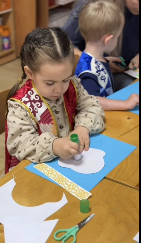 Ата-аналар мен балалардың бірлескен шығармашылығы "Жұлдыз" орта тобы "Жұлдыз" орта тобында Қазақстан Республикасы күніне арналған ата — аналар мен балалардың бірлескен шығармашылығы атты қызықты іс-шара өтті. Балалар аналар мен әкелермен бірге Қазақстанның рәміздері мен көрікті жерлерін бейнелейтін жарқын мерекелік қолөнер жасай отырып, қиялын, шеберлігін және Отанға деген сүйіспеншілігін көрсетті.